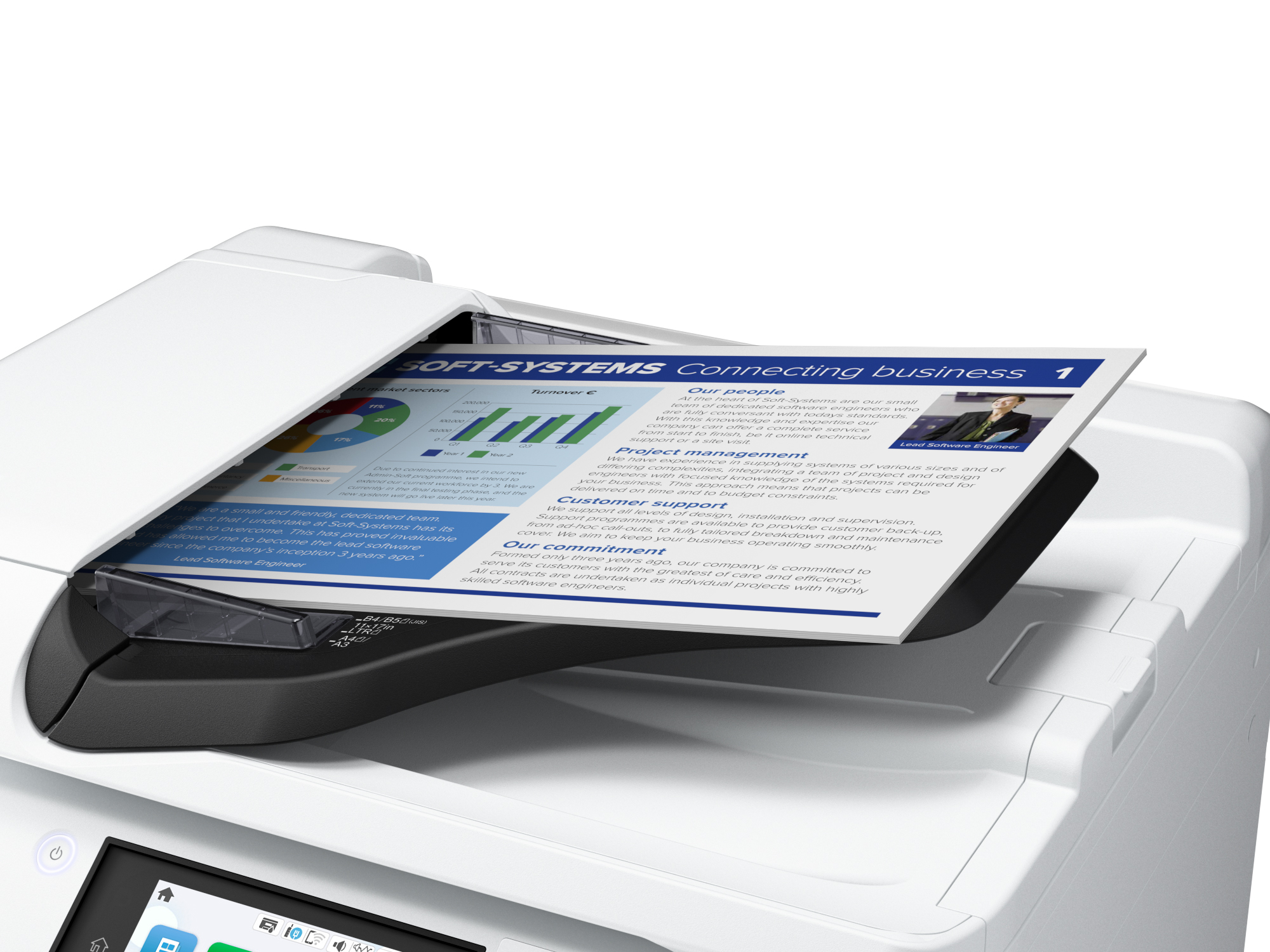 Supported Software Solutions:Epson Device Admin, Epson Remote Services (Embedded), Epson Print Admin, Document Capture Pro