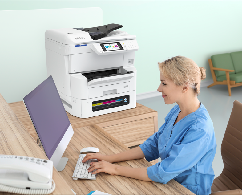 Equipped with Epson PrecisionCore Print head, this printer delivers prints of up to 25 ipm for single sided and 16 ipm for double sided documents. The Heat- Free Technology of ink jet printers reduce waiting times with no warm-up time for quick first page out time of 4.8 sec contributing to a more productive workspace.